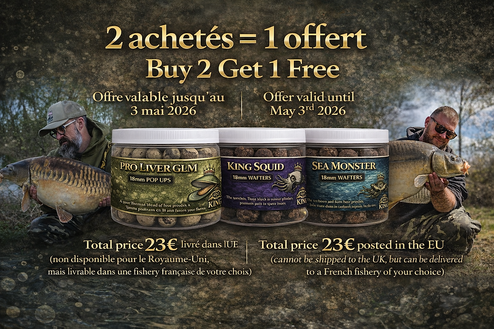 A blend of low temp fishmeals, Squid and Mussel meals, powdered garlic, Amino blend, liquid fermented Squid produced in a subtle washed out color to trip up the waryest of carp.
